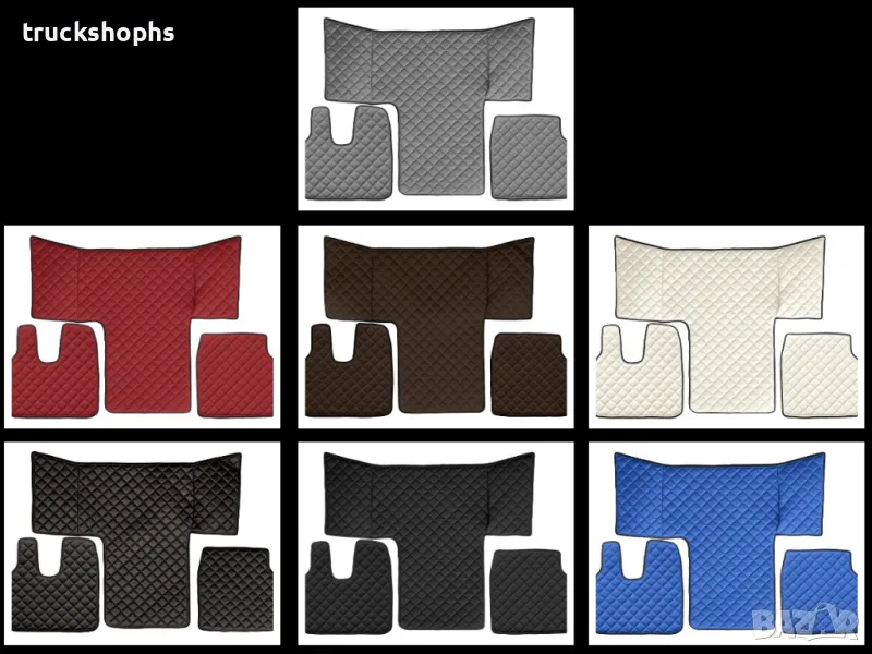 Стелки,тапицерии,маси и завеси за DAF XF95(01.1997-12.2005). Стелките,тапицериите и масите осигуряват уникален стил и елегантност на вашия камион. Най-висококачествените материали, внимателното завършване и иновативните решения характеризират нашите аксесоари. За професионалния шофьор на камион кабината е синоним на дом. Ние знаем, че е толкова важно да се чувствате във вашия камион като в собствен дом. Капитонираните подови стелки,тапицерии и маси, изработени от синтетична кожа, правят вашия интериор гостоприемно място.
