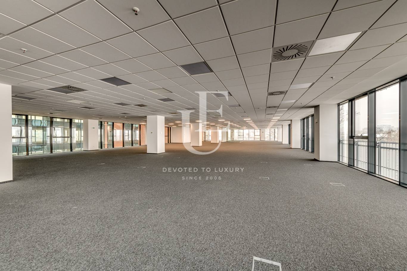 Разпределението на офис пространствата е следното: open space помещение, с 2 отделни остъклени офиси, и 2 тоалетни, плюс общи части с излаз към асансьори и стълби. Цената е без включен ДДС. Ref. ID:25231