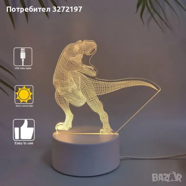 Холограмна 3D LED лампа - Динозавър → Обява 49576287