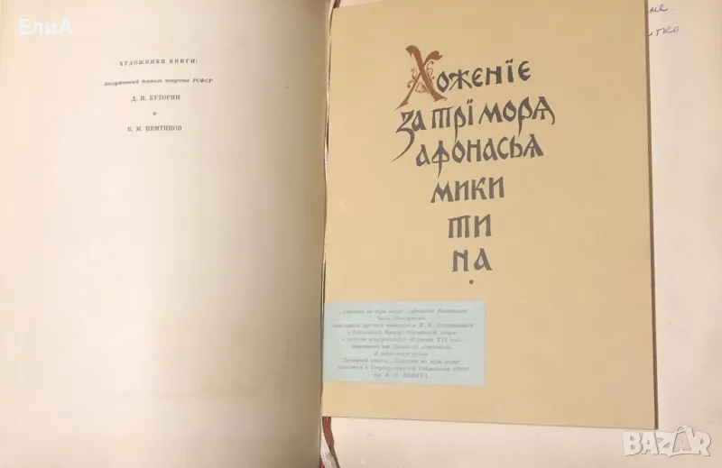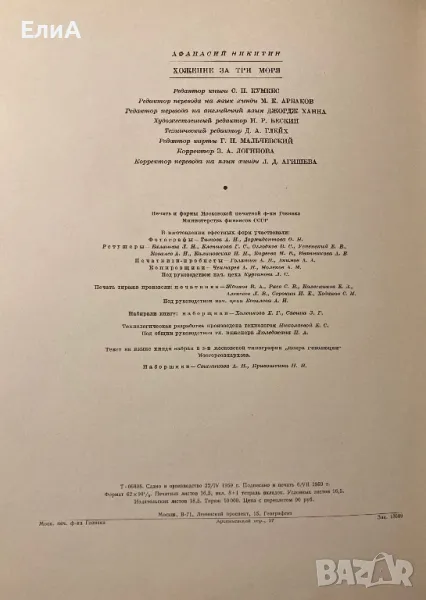 Хож[д]ение за три моря Афанасия Никитина, 1466-1472 гг. / Сост. : И. Г. Веритэ ; Пер на совр. рус. яз. Н.С. Чаева ; Пер на яз. хинди Я. Умраникара ; Пер. на англ. яз. С. З. Апресяна ; Послесл. М. Н. Виташевской, С. Н. Кумкеса ; Худож. : Д. Н. Буторин, Б .Н. Немтинов. – М. : Географгиз, 1960. – 132 с. : ил. + Прил. Факсимиле рукописи «Хождение за три моря Афанасия Никитина» из Троицкой летописи (48 с.).