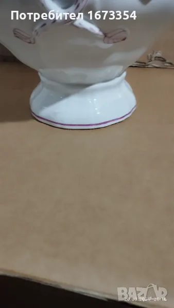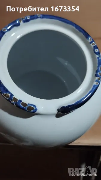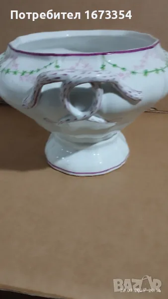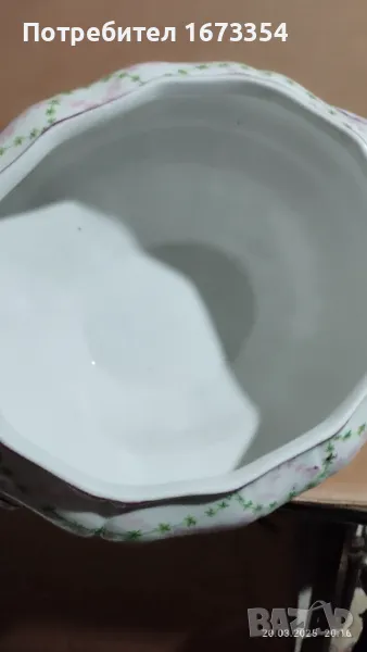 нещо което е имало като поставка можеби или е за използване като кашпа НОВ без счупвано пукнато одраскано или други забележки без забележки с размер вис 16 см диаметър на отвора 20×17 см и долу в основата 15×12 см
