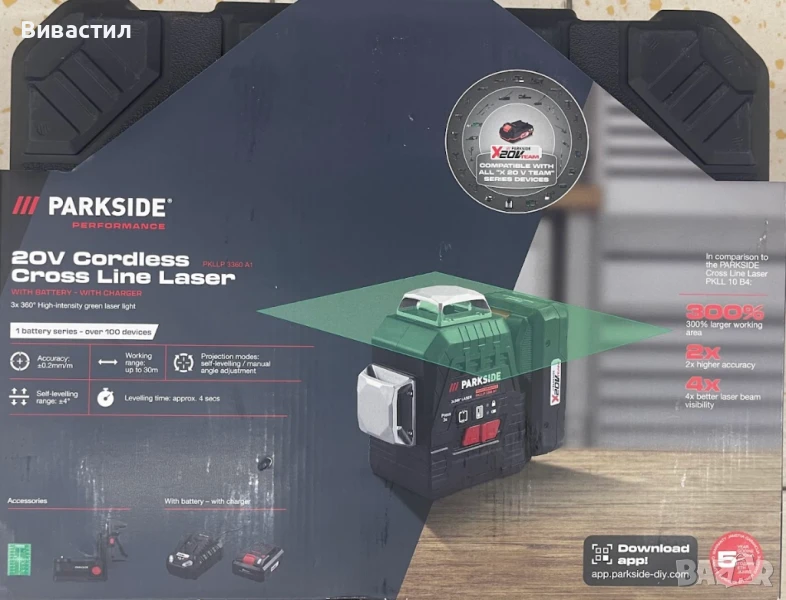 Два зелени лазерни нивелира Парксайд нови Parkside внос от Германия с тринога. → Обява 49577470