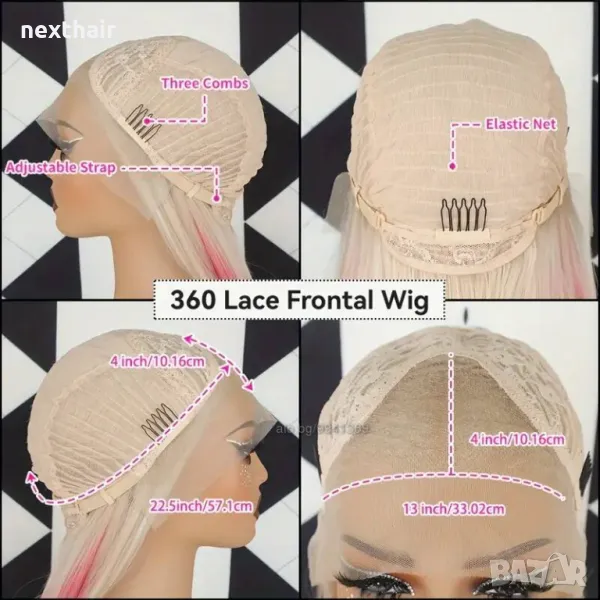 Перука от синтетичен косъм, която може да издържи на температура от 150 градуса. Размерът на шапката е среден. 100% дишащата мрежа от вътрешната страна, която Ви кара да се чувствате комфортно, когато я носите. Има две ленти за регулиране от двете страни на перуката, можете да го регулирате според размера на главата, който Ви подхожда.