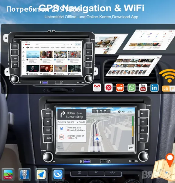- Вградена GPS навигация: Потребителите могат да закупят офлайн навигация директно от Play Store. С wifi връзка, Google Maps може да се използва перфектно, можете да отидете където пожелаете и никога повече да не се изгубите.