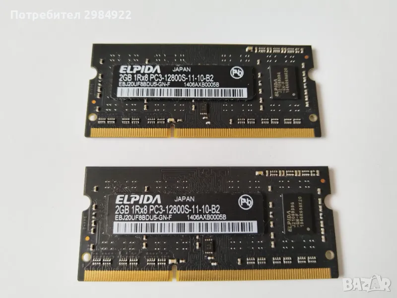 РАЗПРОДАЖБА  ELPIDA RAM DDR3 4GB 1Rx8 PC3-12800S (2x2GB) от MACBOOK PRO НАМАЛЕНИЕ , снимка 1 - RAM памет - 49578199 РАЗПРОДАЖБА  ELPIDA RAM DDR3 4GB 1Rx8 PC3-12800S (2x2GB) от MACBOOK PRO НАМАЛЕНИЕ , снимка 2 - RAM памет - 49578199 РАЗПРОДАЖБА  ELPIDA RAM DDR3 4GB 1Rx8 PC3-12800S (2x2GB) от MACBOOK PRO НАМАЛЕНИЕ , снимка 3 - RAM памет - 49578199 РАЗПРОДАЖБА  ELPIDA RAM DDR3 4GB 1Rx8 PC3-12800S (2x2GB) от MACBOOK PRO НАМАЛЕНИЕ , снимка 4 - RAM памет - 49578199 РАЗПРОДАЖБА  ELPIDA RAM DDR3 4GB 1Rx8 PC3-12800S (2x2GB) от MACBOOK PRO НАМАЛЕНИЕ , снимка 5 - RAM памет - 49578199 1/5