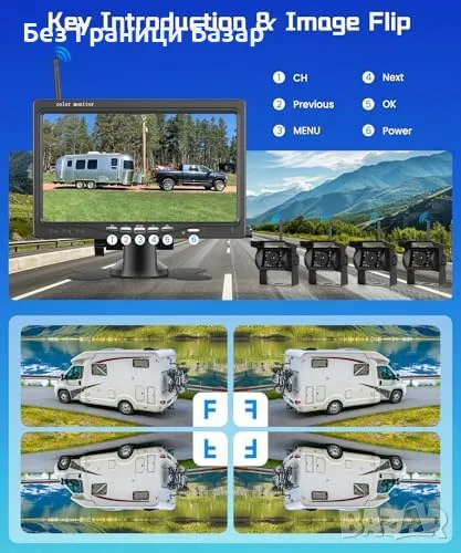 Стабилна безжична връзка – 2.4G честотно хопиране за силен и безпроблемен сигнал, подходящ за ремаркета и кемпери.