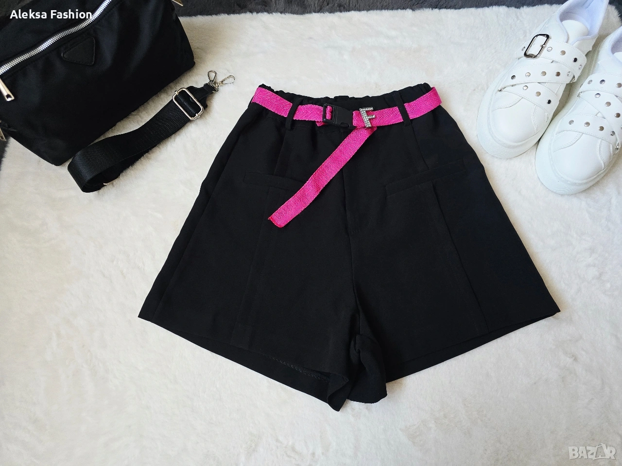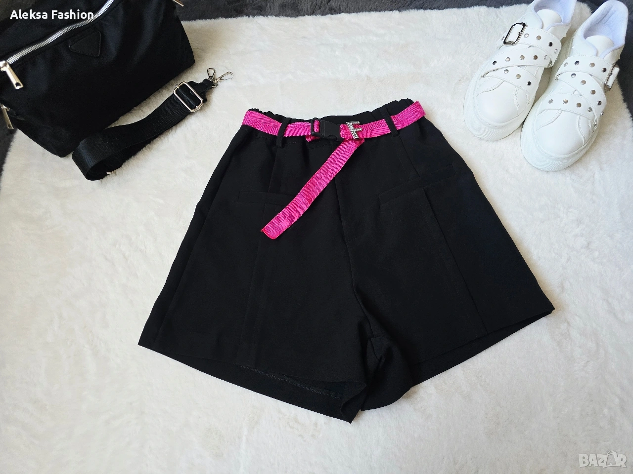 С ластик в талията,и розов колан.