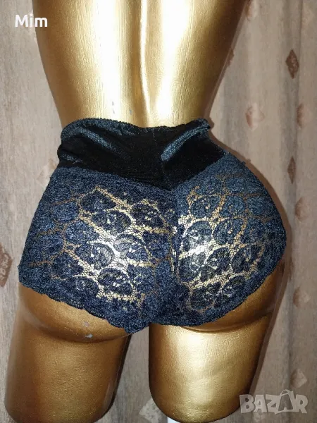 S Черни бикини с висока талия от дантела и еластичен сатен → Обява 49579957