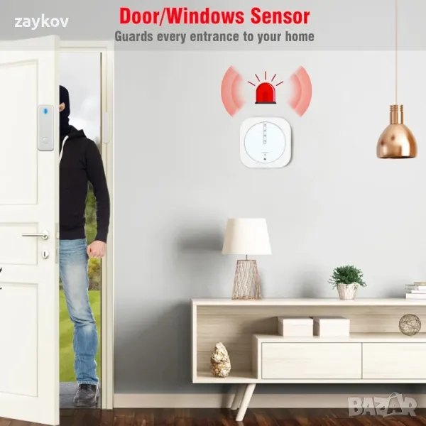 Гласов контрол и Wi-Fi мрежа: Вашата алармена система може лесно да се управлява от режимите Навън, Дезактивиране и У дома с вашия глас. Работи с Alexa. Свържете се с Wi-Fi (2.4G) чрез приложението Tuya и поставете сензорите там, където имате най-голяма нужда.