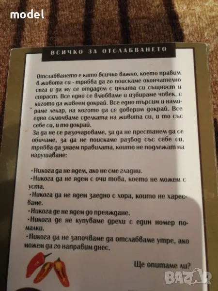 Всичко за отслабването - Цвета Гаврилова, снимка 1 - Специализирана литература - 49580954 Всичко за отслабването - Цвета Гаврилова, снимка 2 - Специализирана литература - 49580954 Всичко за отслабването - Цвета Гаврилова, снимка 3 - Специализирана литература - 49580954 Всичко за отслабването - Цвета Гаврилова, снимка 4 - Специализирана литература - 49580954 1/4