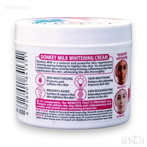 ПРОМО!! Избелващ и хидратиращ крем за лице с магарешко мляко ORIGINAL , 115мл