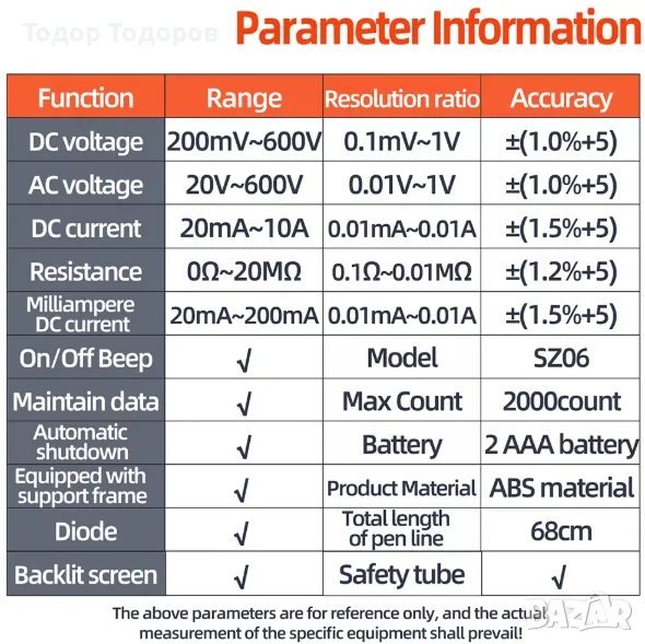 Мултицет ANENG SZ06, снимка 1 - Друга електроника - 49582110 Мултицет ANENG SZ06, снимка 2 - Друга електроника - 49582110 Мултицет ANENG SZ06, снимка 3 - Друга електроника - 49582110 Мултицет ANENG SZ06, снимка 4 - Друга електроника - 49582110 Мултицет ANENG SZ06, снимка 5 - Друга електроника - 49582110 Мултицет ANENG SZ06, снимка 6 - Друга електроника - 49582110 Мултицет ANENG SZ06, снимка 7 - Друга електроника - 49582110 Мултицет ANENG SZ06, снимка 8 - Друга електроника - 49582110 1/8
