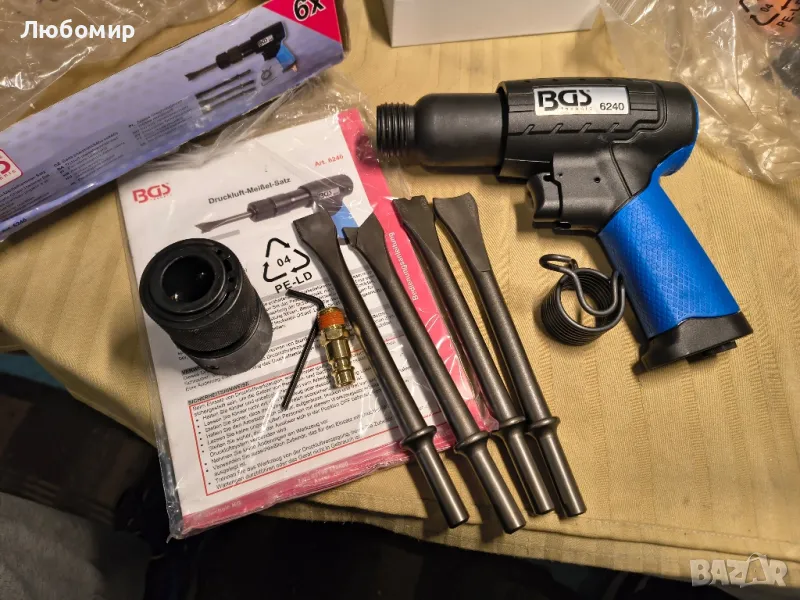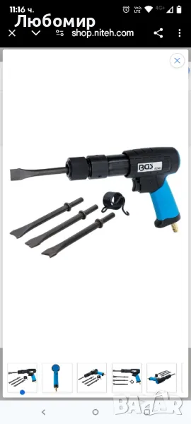 Пневматичен чук за универсална употреба, рязане на метални листове (в автомобилната промишленост), в строителството (работа върху зидария или за рязане на мазилка и плочки) и машиностроенето (за разхлабване на ръждясали винтови връзки).