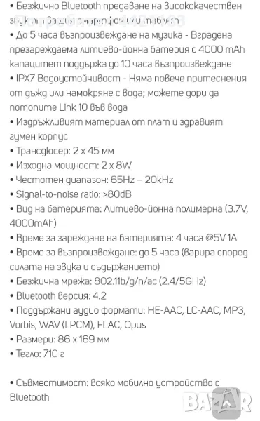 JBL LINK 10 нова батерия, снимка 1 - Слушалки за компютър - 49582322 JBL LINK 10 нова батерия, снимка 2 - Слушалки за компютър - 49582322 JBL LINK 10 нова батерия, снимка 3 - Слушалки за компютър - 49582322 JBL LINK 10 нова батерия, снимка 4 - Слушалки за компютър - 49582322 JBL LINK 10 нова батерия, снимка 5 - Слушалки за компютър - 49582322 JBL LINK 10 нова батерия, снимка 6 - Слушалки за компютър - 49582322 JBL LINK 10 нова батерия, снимка 7 - Слушалки за компютър - 49582322 1/7
