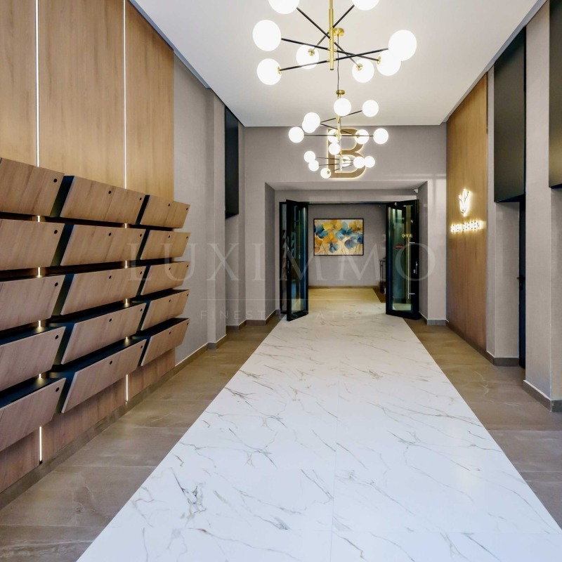 Апартаментът е със светла височина на таваните 2.80 м и френски прозорци, които го изпълват с естествена светлина.