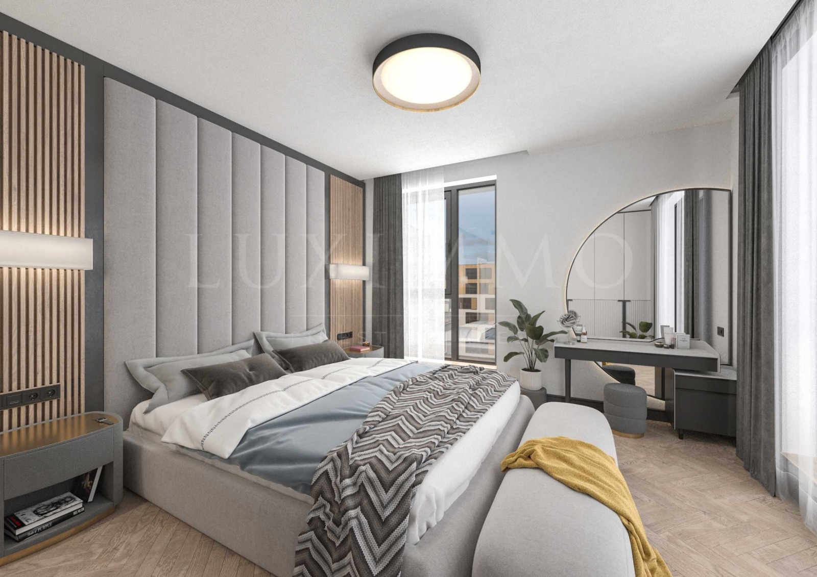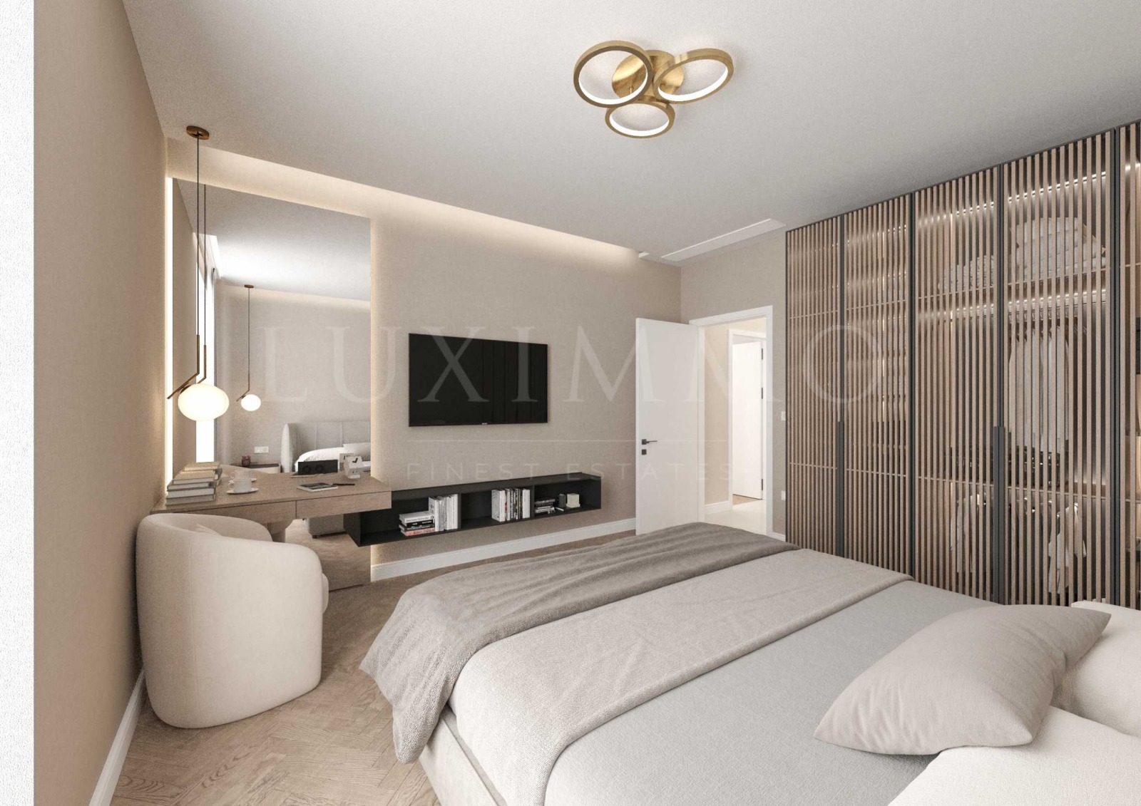 4 спални + 1 гардеробна с достатъчно място за всичко необходимо;