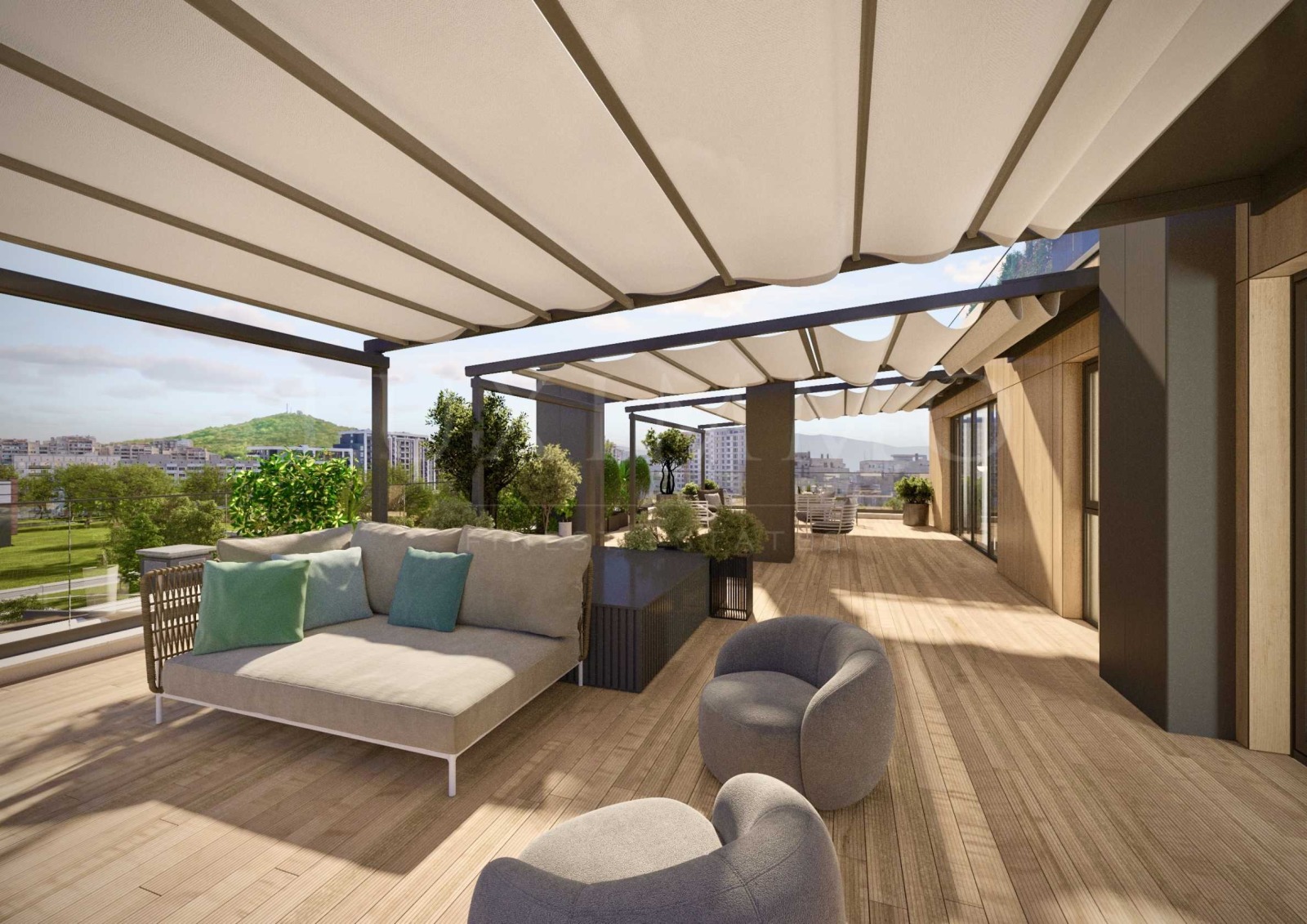 Най-забележителната част на този имот е уникалната тераса с площ над 100 кв.м, ориентирана на изток място, от което всяка сутрин ще посрещате изгрева, изпълнени с вдъхновение и енергия. Тази тераса не е просто открито пространство тя е Вашето лично убежище.
