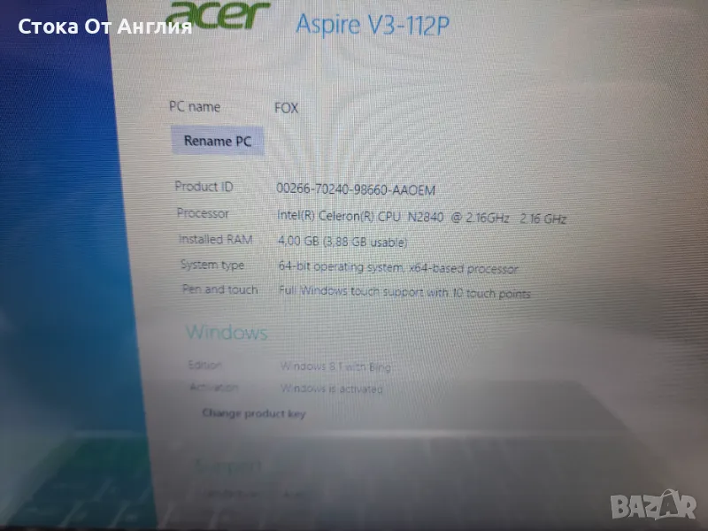 Лаптоп - ACER V3-112P , Intel Celeron N2840 , RAM 4GB , Windows 8.1/L13 → Обява 49583137