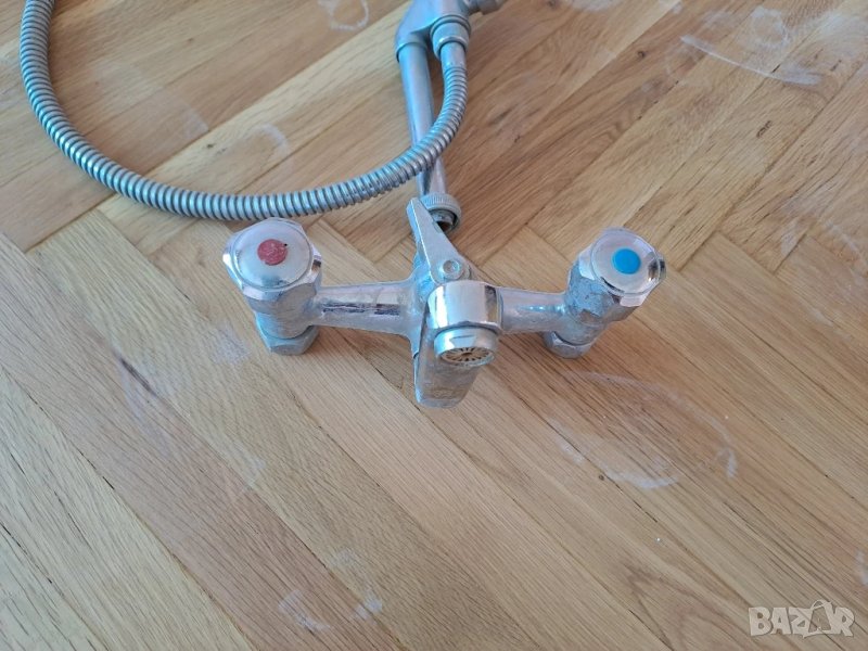 Стоящ душ с батерия смесител и подвижен душ за баня. Демонтиран и готов за пренасяне. Отговарям на съобщения тук, или на т.0887780808, изпращам с куриер с отстъпка, преглед и тест, или лично предаване в София.