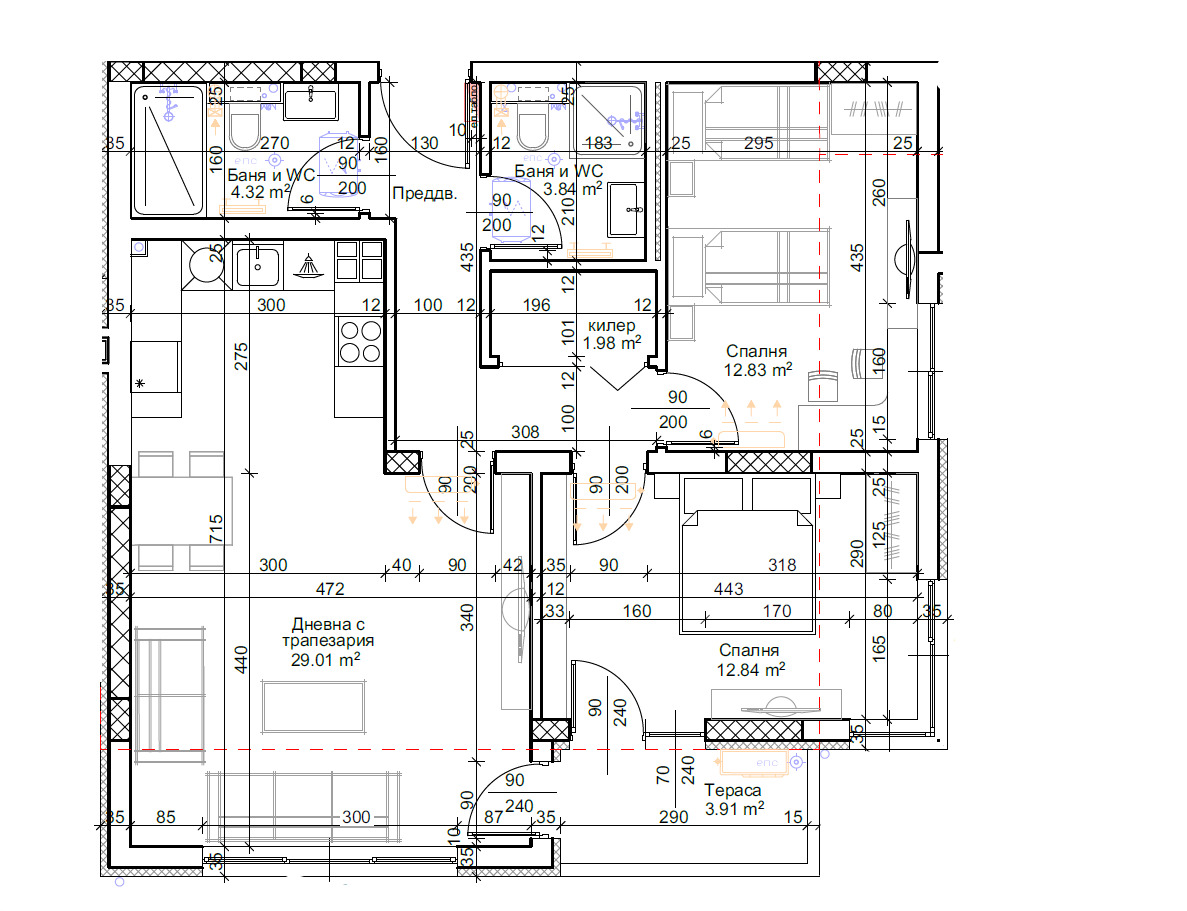 - две бани с тоалетни