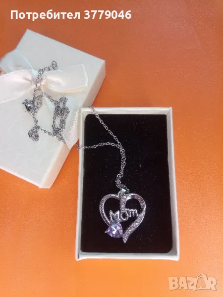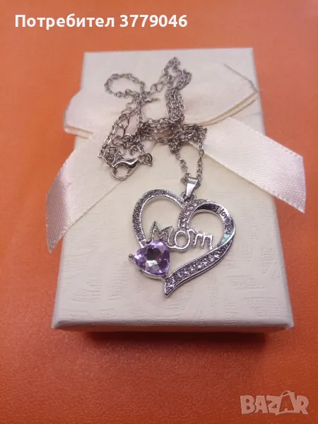 Колие с кристали. Форма на сърце. Цветове бяло и лилаво. С подаръчна кутия.