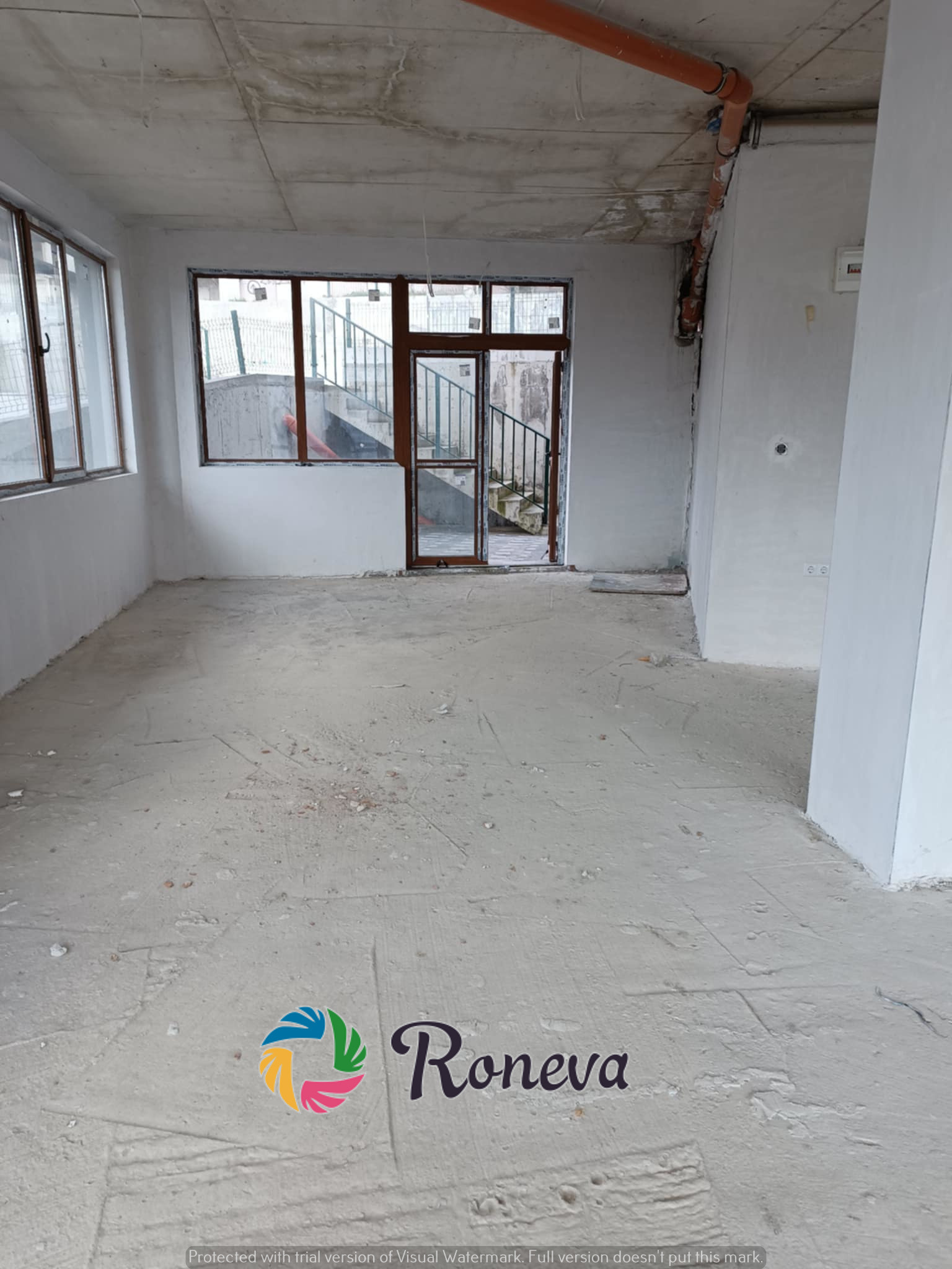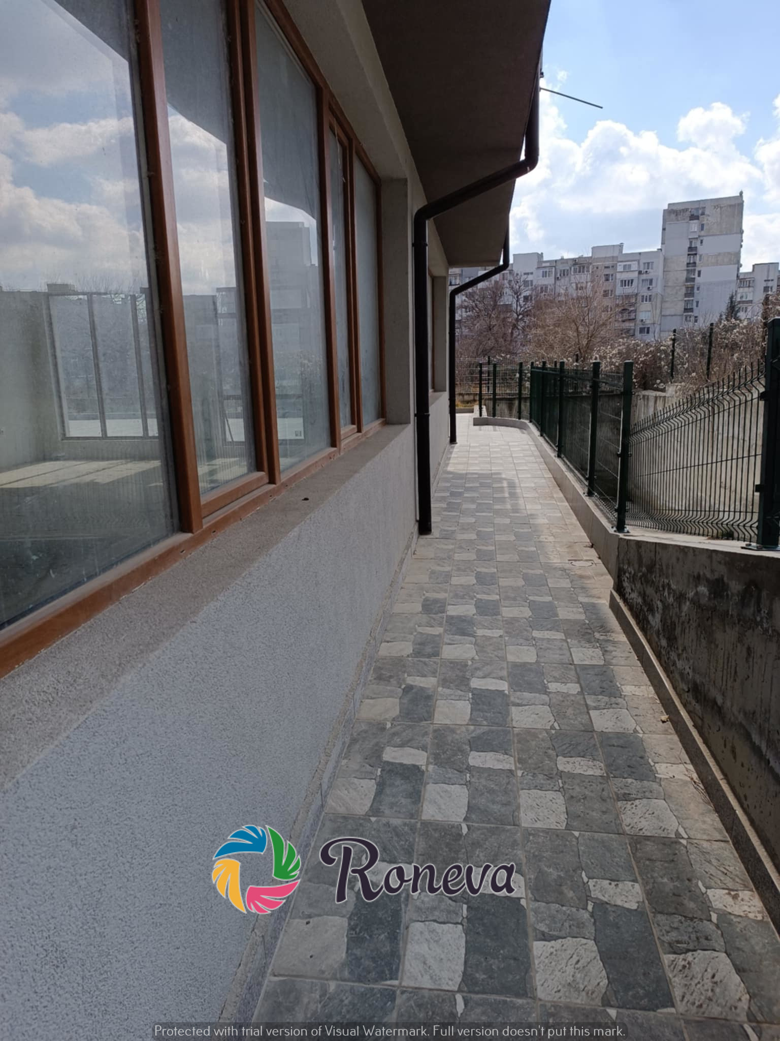 Помещението е ъглово,с изложение юг-запад,много слънчево,а пред него площадка