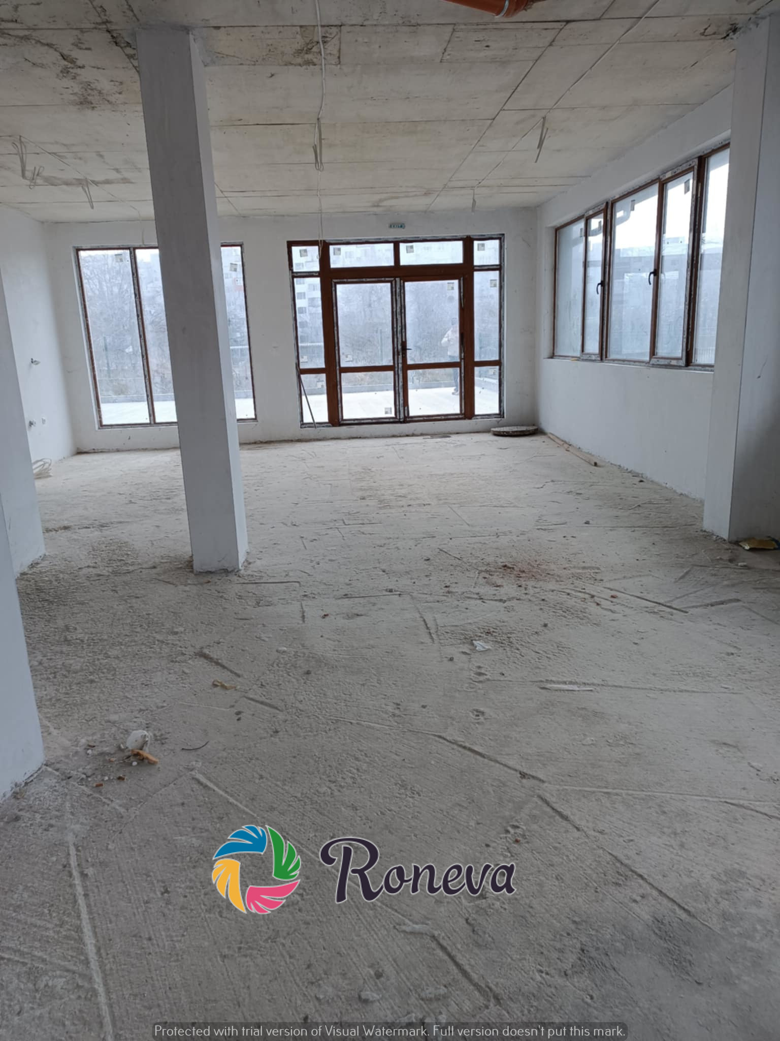 Просторна зала,две санитарни помещения,склад/офис и два входа за помещението.