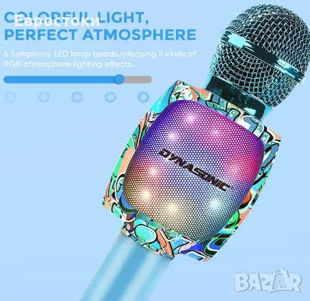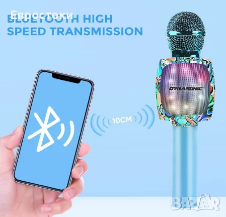 Безжичен караоке микрофон DYNASONIC, преносим Bluetooth караоке микрофон с диско LED светлини