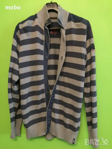 Мъжка жилетка на синьо-сиво райе, марка Garcia, размер„ L„ с дълъг ръкав . Състав: 100% памук.