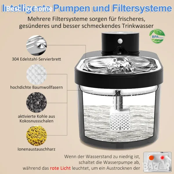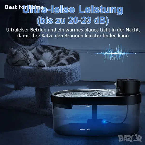 СУПЕР ТИХ Работи тихо с шум от само 20-23 dB и има слаба синя светлина, така че вашият домашен любимец да може да го намери незабавно през нощта