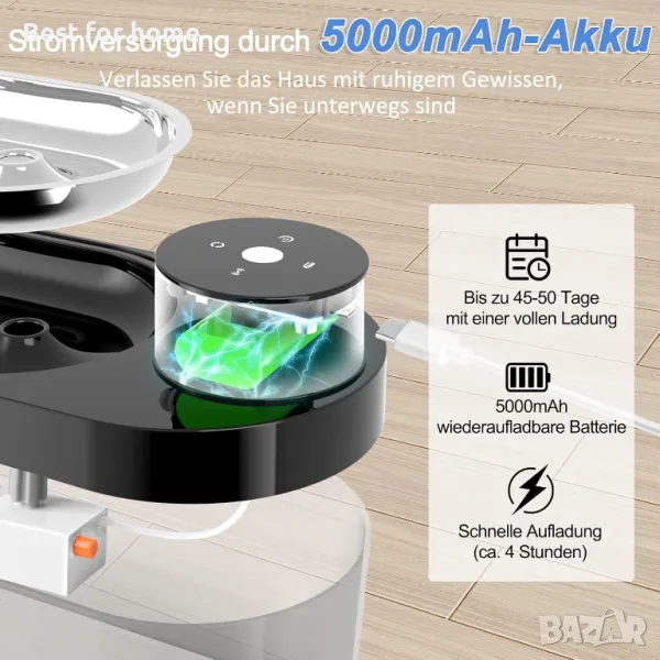 Дизайн за безжично зареждане - Кажете сбогом на заплетените кабели. Благодарение на акумулаторната батерия с голям капацитет можете да поставите безжичната котешка тоалетна навсякъде. С пълно зареждане може да се използва непрекъснато 15 дни