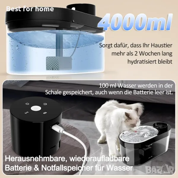 4L голям капацитет за вода - 4L капацитет за вода е достатъчен за множество домашни любимци, така че не е нужно да се притеснявате, че вашите домашни любимци нямат достатъчно вода в движение