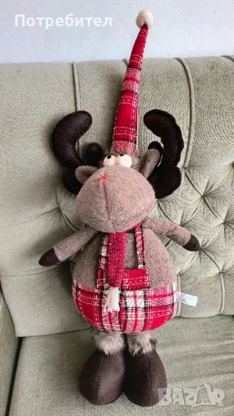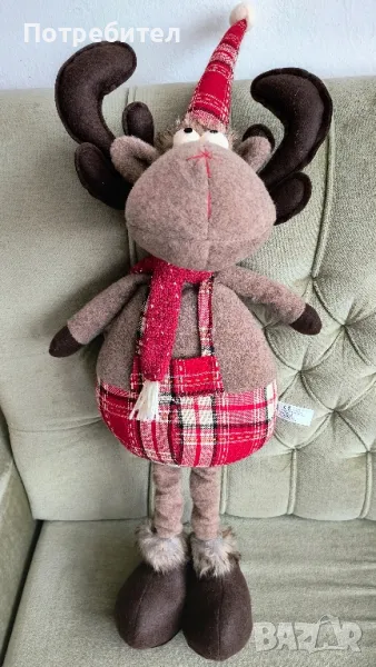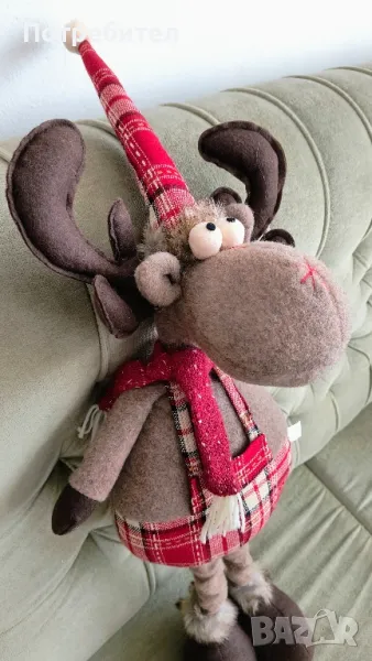 Голям елен с телескопични крака, нов с етикетите, без забележки. Висок 70 см без шапката, с нея 85 см. Краката се сгъват за да се намали височината. Материал - вълнени платове и силиконова вата. Изпращам с преглед преди плащане.Цената е крайна.