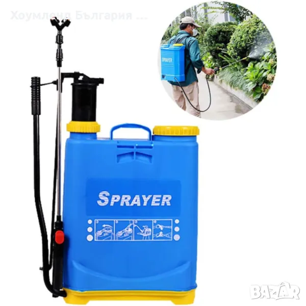 пръскачка за лозе с вместимост 16 литра. С нея се борави лесно. Подходяща е за носене на гръб с удобна дълга дръжка и ръчка за лесно и бързо пръскане на лозя и градина без особени усилия.