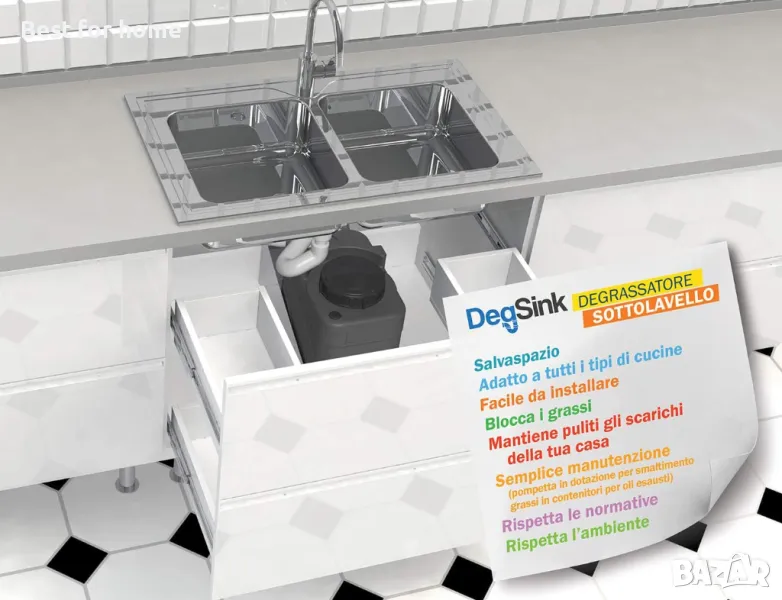 DEGSINK Обезмаслител за под мивка за кухня. Поддържа домашните канали чисти Лесен за инсталиране За поставяне само върху модул за под мивка 36x23xh30 18 литра