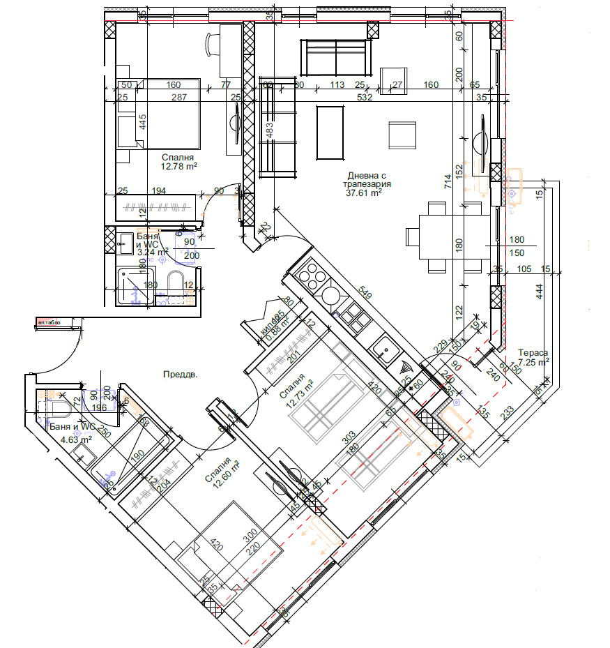 Оферта 82952В Предлагаме Ви многостаен апартамент пред Акт 14, в новострояща се модерна сграда в кв. Тракия. В сградата има възможност за закупуването на гаражи и паркоместа. Жилището се намира на четвърти етаж и е с площ от 139,5 кв.м. Имотът има следното разпределение: