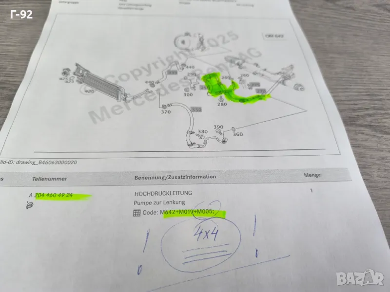 A2044604924**NEU**4x4**MERCEDES-BENZ**Маркуч за хидравличното управление**