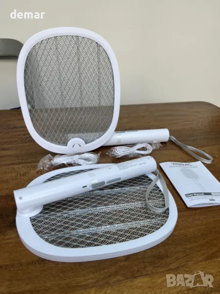 YISSVIC Електрическа мухобойка, Сгъваема ракета, 4000V, 1800mAh, 2 броя-бели