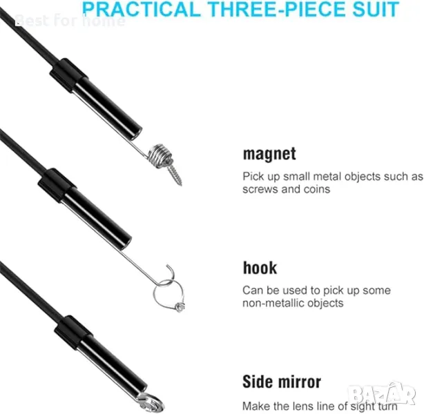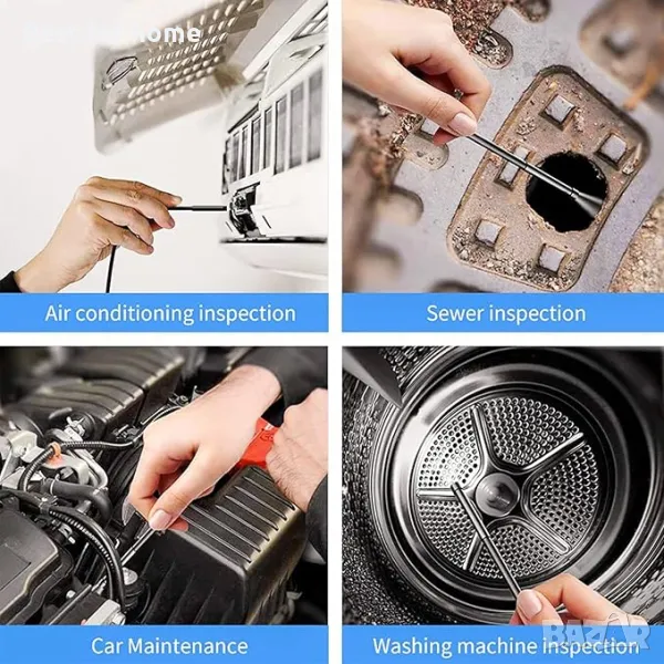 [Широк обхват на приложение]: Ендоскопът се използва широко за безразрушителен тест на недостъпни места и за инспекция в други недостъпни зони, като поддръжка на превозни средства, инспекция на промишлени машини, фиксиране на тръби, инспекция на домакинско оборудване, изследване на подземни пещери, инспекция на стени, инспекция на канализация и др.