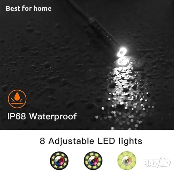 [IP67 водоустойчив, с 8 LED светлини]: 8 LED светлини са вградени, а яркостта се регулира на 3 нива. Ендоскопската камера е подходяща за преглед в тъмни и влажни тесни пространства. Снабден е с два полезни аксесоара, които могат да се използват като кука на магнита и сондата на камерата за различни цели, за да помогнат за улавяне на предмети, които попадат в дренажната тръба или недостъпно пространство.