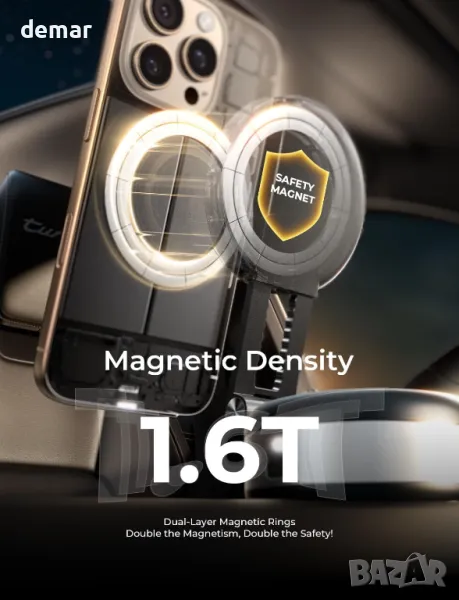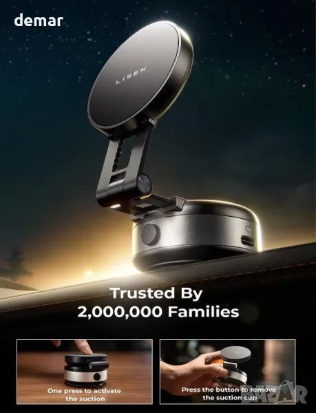 Проектиран изключително за съвместими с MagSafe iPhone (серии от 12 до 16), този модернизиран електрически вакуумен магнитен държач за телефон предлага мощно засмукване с помощта на двуслоен магнитен пръстен за допълнителна сигурност и стабилност, дори и на неравни пътища. Работи без лепило, не оставя остатъци и работи надеждно както при горещи, така и при студени условия. Стойката изисква първоначално зареждане с адаптер под 15 W и работи 7–14 дни с едно зареждане; червена светлина показва кога е необходимо презареждане. Не е съвместим с устройства с Android или неравни, извити, дървени, тухлени или кожени повърхности.