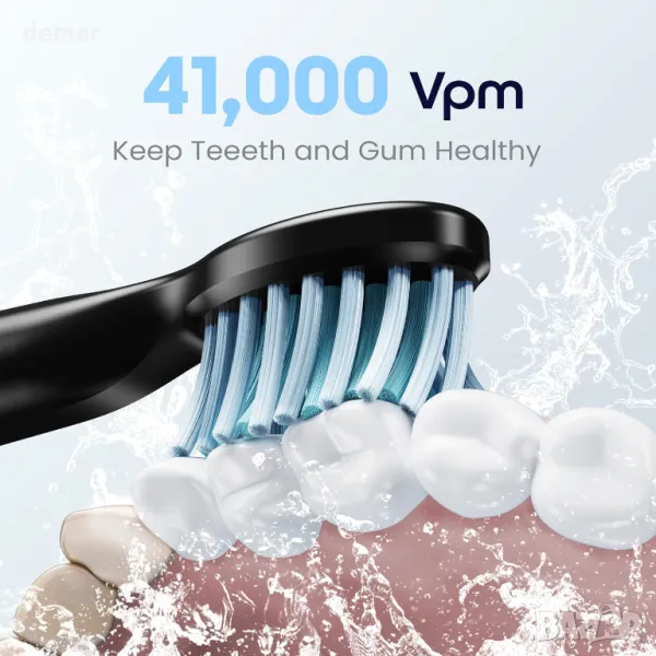 Тази електрическа четка за зъби разполага с водоустойчив дизайн IPX7, позволяващ безопасно използване под душа и лесно изплакване, с издръжлива конструкция, която е устойчива на влага и ръжда. Пълното зареждане отнема само 3 часа и издържа до 45 дни, което го прави идеален за ежедневна употреба и пътуване. Предлага се с 6 висококачествени, ергономични глави на четката — достатъчни за 18 месеца — проектирани за дълбоко почистване и лесна смяна. Четката за зъби предлага множество режими на почистване, включително Чисто, Бяло, Полиране, По-меко и Меко, всеки с 2-минутен таймер и 30-секундни интервали. За безопасност използвайте само зарядно устройство 5V-1A и се уверете, че остава сухо през цялото време.