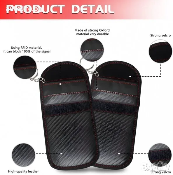 За да защитите колата, поставете ключовете в горния джоб със сребриста подплата. От своя страна долната ви позволява да установите сигнал с автомобила, благодарение на който се използва за съхранение на ключове по време на шофиране.
