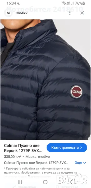 Оригинално мъжко олекотено пухено яке, без забележки след употреба. Тъмно синьо!