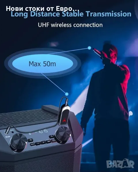 Безжичен микрофон LOCOCO, UHF безжичен караоке микрофон, USB ръчен микрофон