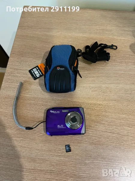 Подаръци с фотоапарата са: microSD HC карта памет Kingston 8GB и нов, неизползван защитен калъф Lowepro Apex 5 AW (All Weather с дъждобранче). Моля вижте снимките за