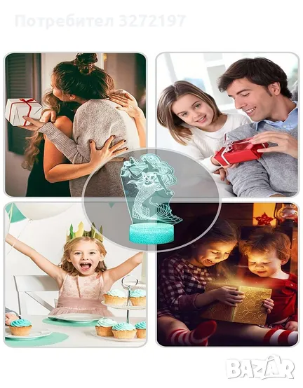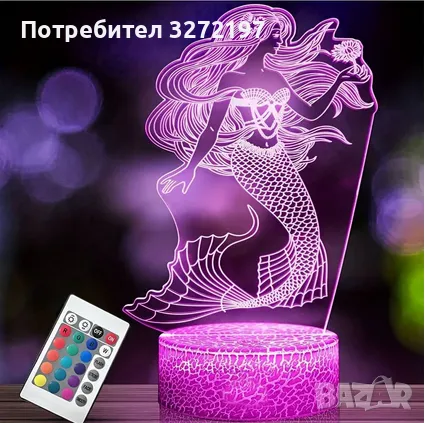 Холограмна 3D LED лампа Малката Русалка-дистанционно управление 16 цвята+други режими на управление