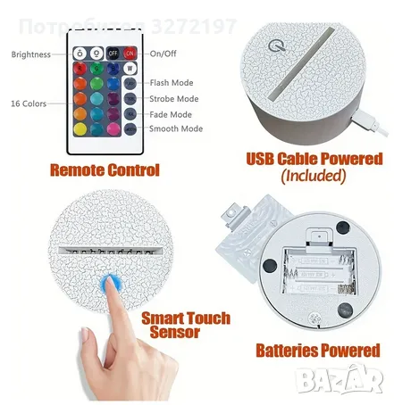 Практично и безопасно: 3D USB илюзионна лампа или 3 AAA батерии,