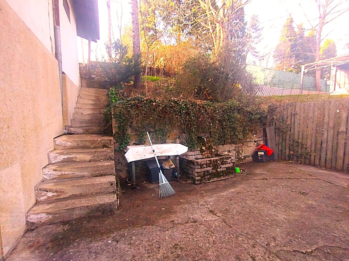 Дворът е терасиран е на две нива, с много дървета наоколо с усещане за гора, с рекичка в ниската част.