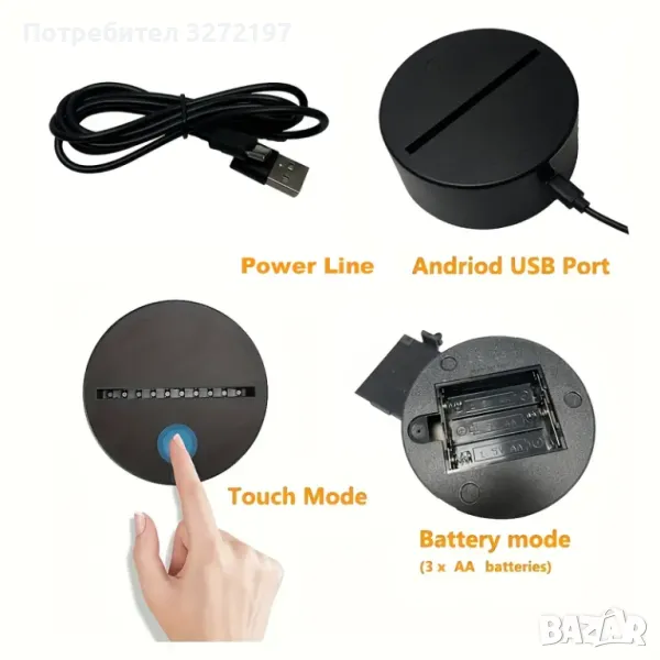 Практично и безопасно: 3D USB илюзионна лампа или 3 AAA батерии,